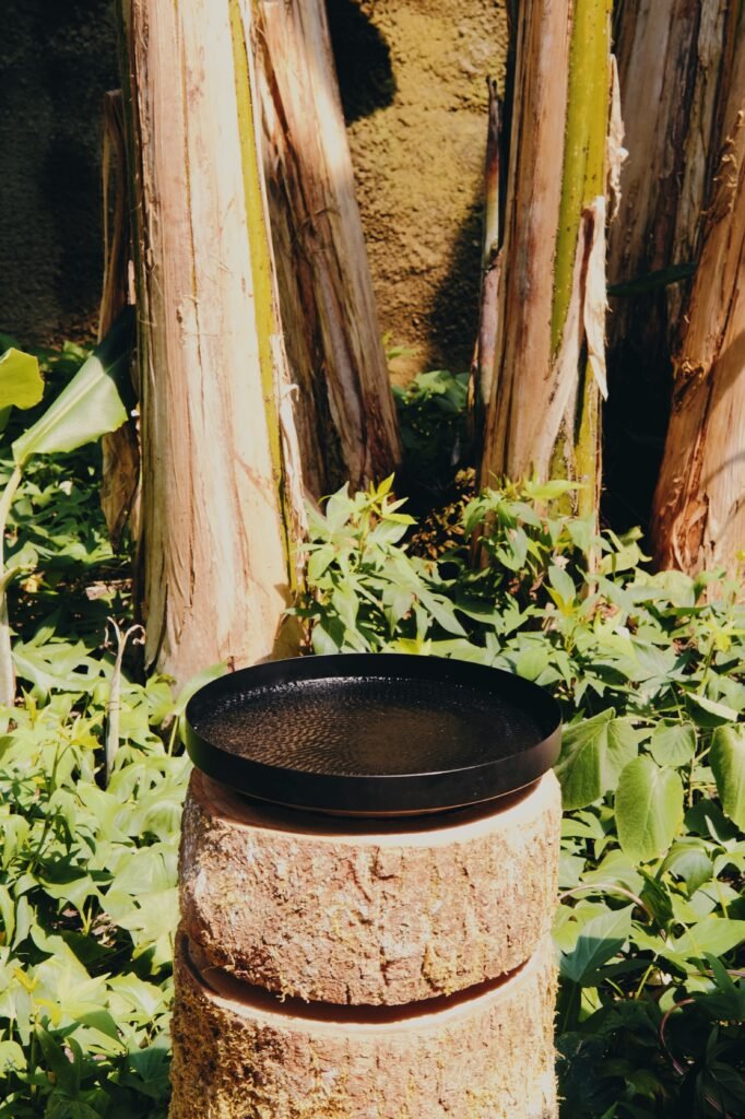 The pool rests on a plinth of ash; a tree that lived for seventy years before falling of its own accord in February 2025.